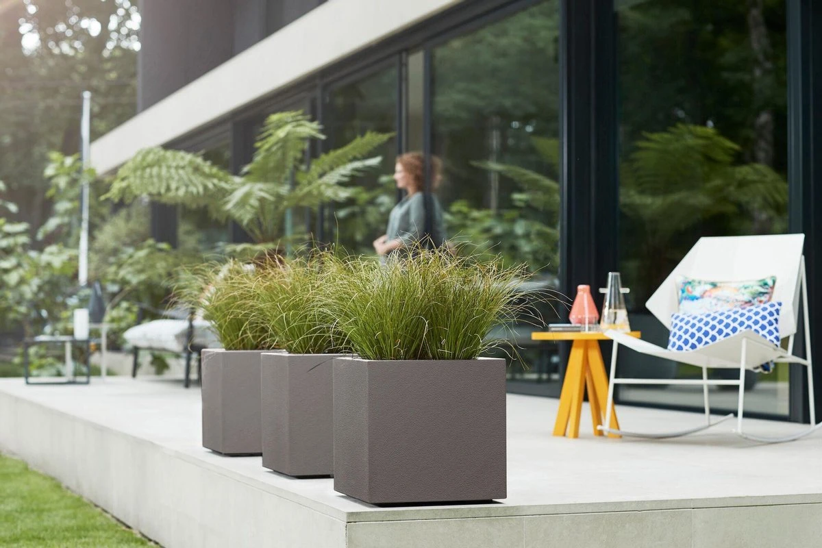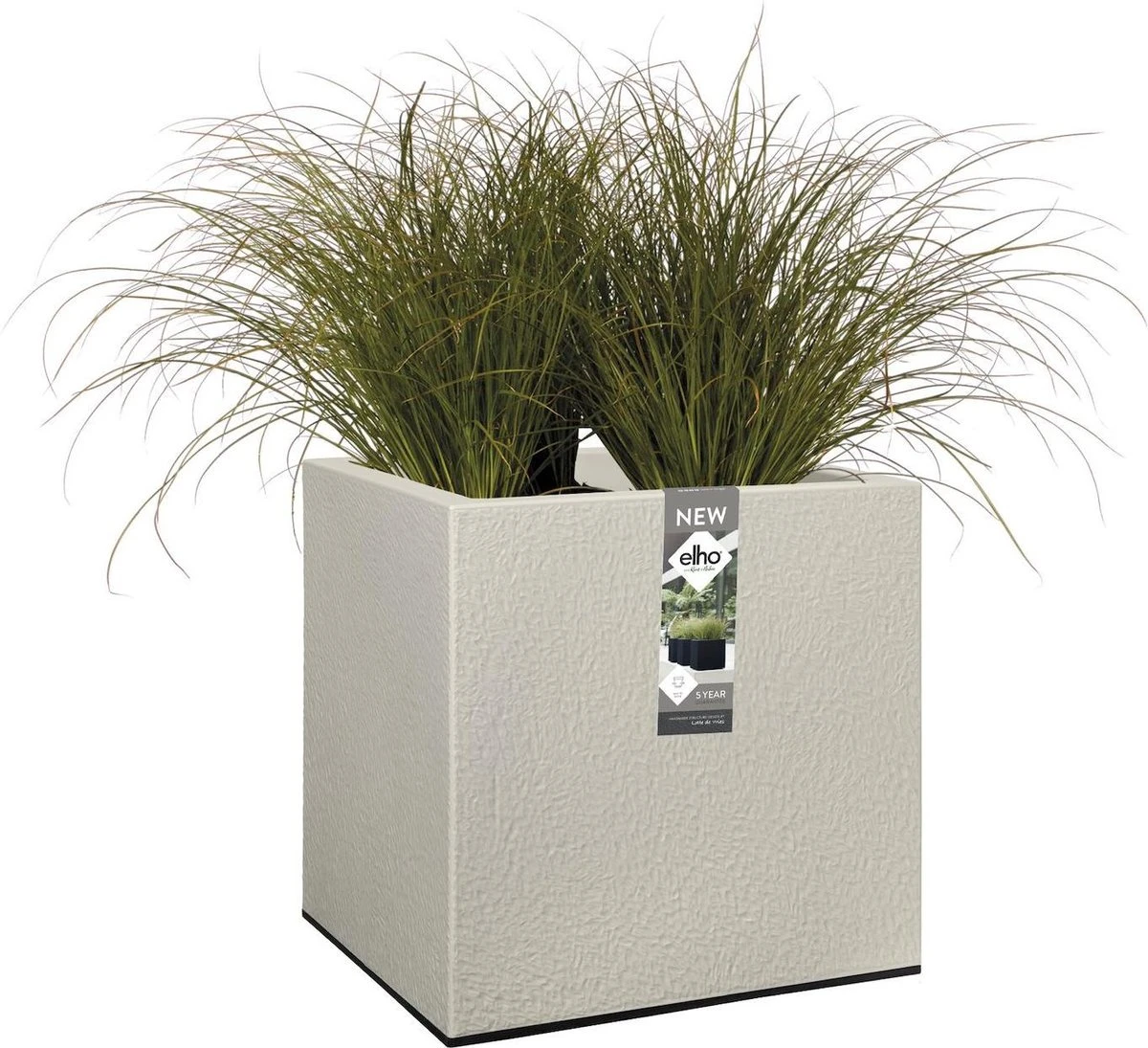 Elho Vivo Structure Finish Vierkant 40 – Plantenbak Voor Binnen & Buiten – Ø 39 X H 41 – Grijs/Warm Grijs