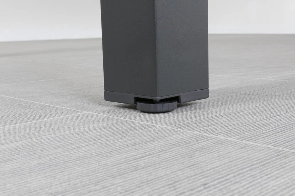 De Alma tuintafel heeft een moderne uitstraling. Het frame van de tuintafel is gemaakt van aluminium en afgewerkt met een antracietkleurige coating welke kras- en stootvast is. Aluminium is een veel gebruikt materiaalsoort in de tuinmeubelindustrie. Het heeft namelijk een lange levensduur, is onderhoudsarm en kan niet verroesten. Elke tafelpoot is afzonderlijk verstelbaar zodat je de tuintafel stabiel kunt afstellen. Hierdoor heb je geen last van wiebelende hoeken. Het tafelblad van de Alma tuintafel is gemaakt van speciaal veiligheidsglas welke afgewerkt is met een beschermlaag.