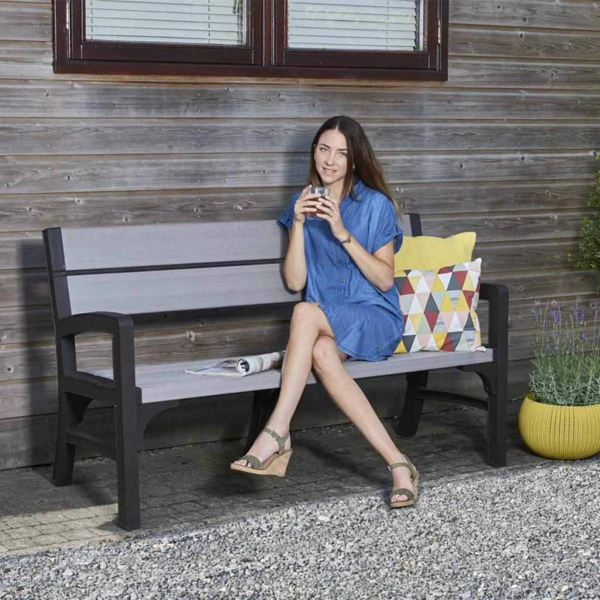 De Keter Montero Tuinbank verbetert het uiterlijk van elke tuin en biedt een comfortabele en ruime buitenzitplaats. Onderhoudsvriendelijk en van hoge kwaliteit. De bank is gemaakt van DUOTECH, een innovatief materiaal dat zorgt voor weerbestendigheid en UV-bescherming, waardoor het oppervlak vrijwel onderhoudsvrij is. Met een tweekleurig ontwerp en een houtachtige textuur is de bank zowel mooi als praktisch.