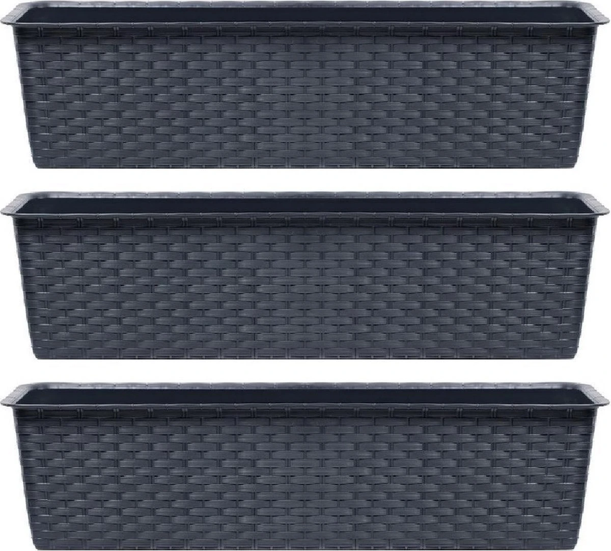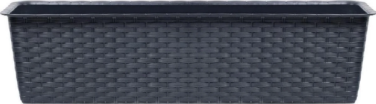 4x Ratolla rotan plantenbak/bloembak antraciet 6.3 liter. Kras en stootvaste bloembak/plantenbak met rotanvlechtwerk uitstraling. Voorzien van een onderzetter met sluitsysteem. Zonder afwateringsgaten. De bloembakken/plantenbakken zijn geschikt voor binnen en buiten gebruik. Serie: ratolla case. Formaat: lengte ca 39,1 cm. Breedte: ca 17,3 cm. Hoogte: ca 14,5 cm. Inhoud: 6,3 liter.
