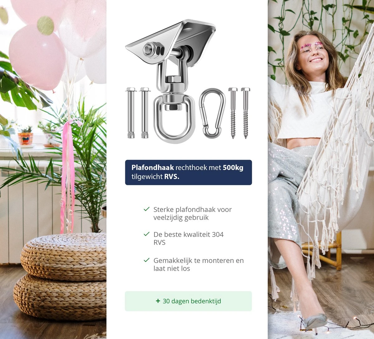 Veelzijdig in gebruik Voor een hangstoel, hangmat, bokszak, schommel, nestschommel, schaduwdoek
