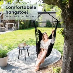Vita5 Hangmat Met Standaard – 2 Persoons – Incl. Bekerhouder – 205kg Draaggewicht – Beige/Wit