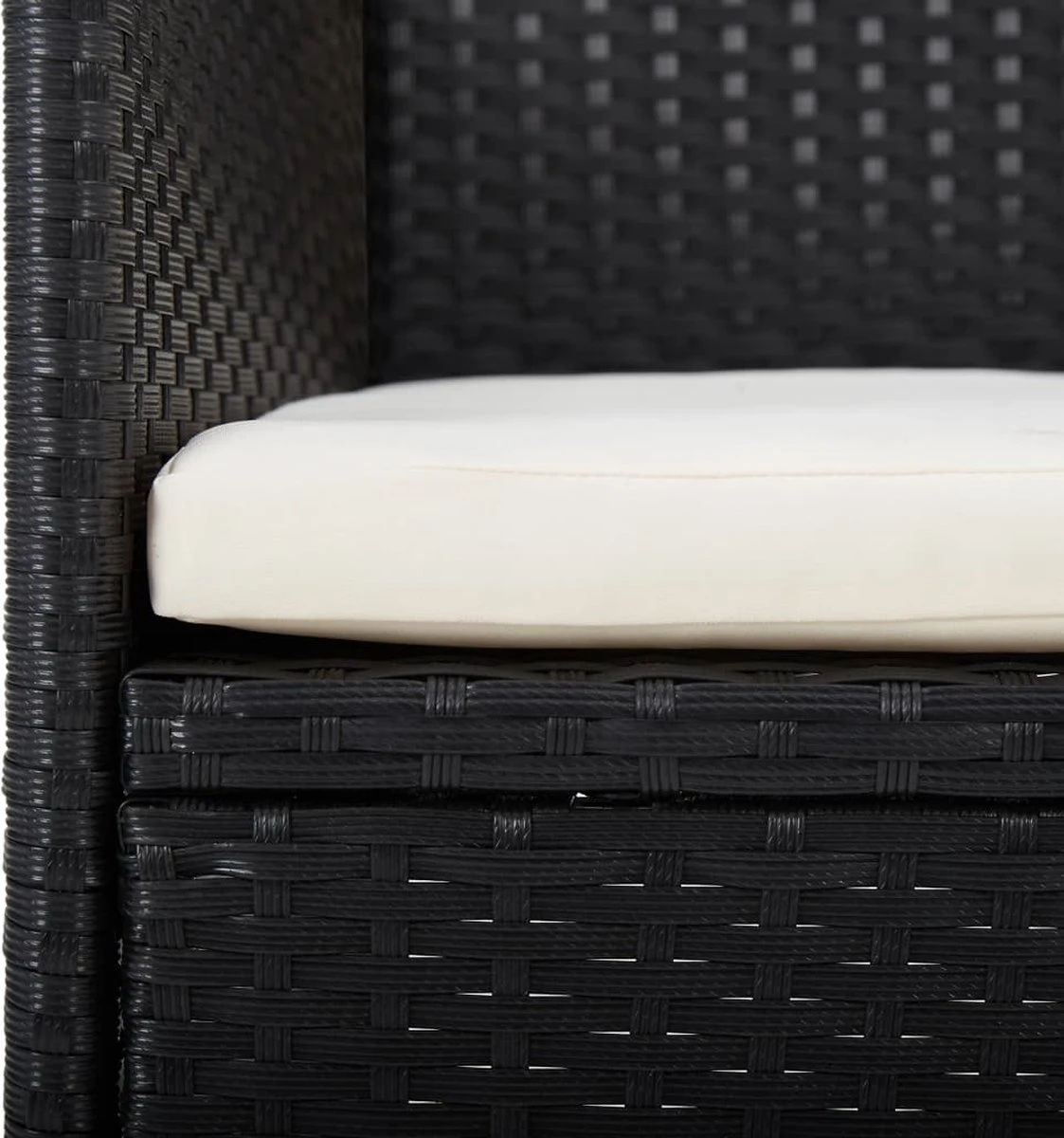 - Materiaal: poly rattan, gepoedercoat staal en stof (100% polyester)